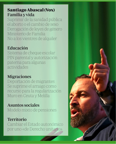 Las propuestas estrella de Vox son un cheque escolar, de modo que cada familia elija el centro en el que quiere escolarizar a sus hijos, y la creación de un PIN parental para que los padres autoricen o no la presencia de sus hijos en actividades donde se aborden cuestiones éticas y morales.