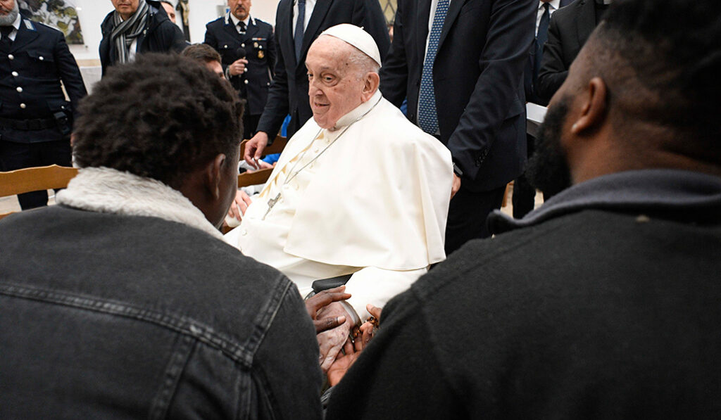 17 de abril: el Jueves Santo, visita a 70 internos de la cárcel Regina Coeli. Por problemas de salud no puede lavarles los pies.