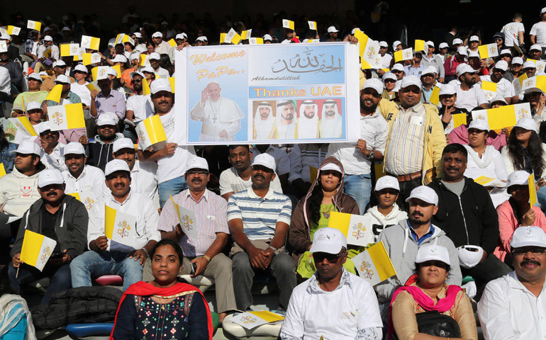 Fieles esperan la llegada del Papa al Zayed Sports City de Abu Dabi para participar en la Eucaristía el martes. Foto: REUTERS/Tony Gentile