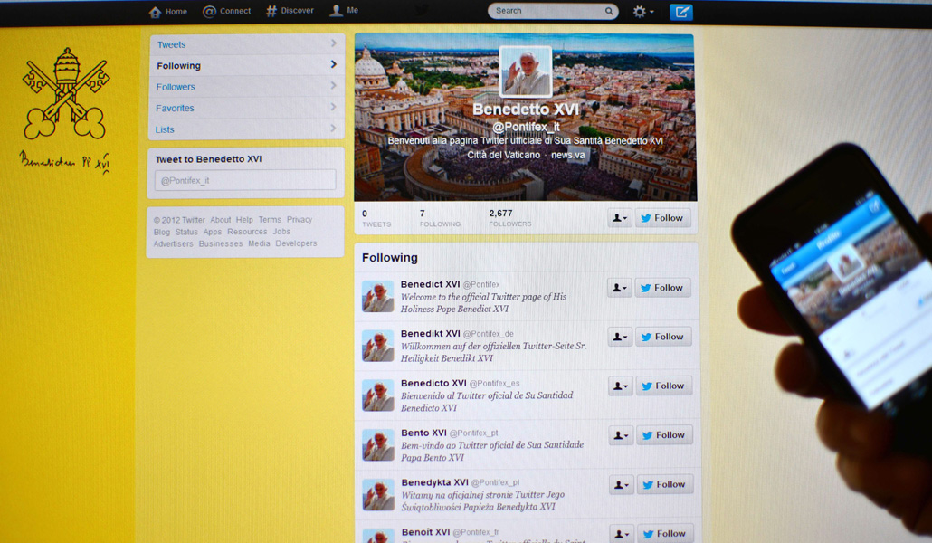 El Pontificio Consejo para las Comunicaciones Sociales anunció el lunes el nombre del perfil personal que el Papa Benedicto XVI tendrá en la red social Twitter y a través del que escribirá tuits (mensajes de 140 caracteres). «Serán pocos al año y sólo para ocasiones especiales», como ya anunció en Alfa y Omega Gustavo Entrala, director de la Agencia 101 y uno de los artífices de la entrada del Sumo Pontífice en esta red.