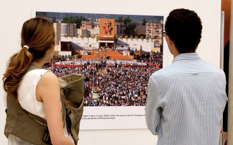 El ciclo de eventos se inició con la exposición fotográfica Un santo en Sevilla, que organizó la agencia EFE en la sede de la Fundación Cajasol. En esta muestra se exhibieron las imágenes más emblemáticas y simbólicas de la visita de san Juan Pablo II a Sevilla. Así, los visitantes pudieron contemplar 25 escenas del aluvión de alegría y esperanza con que el pontífice contagió a los sevillanos en su cuarto viaje a España.