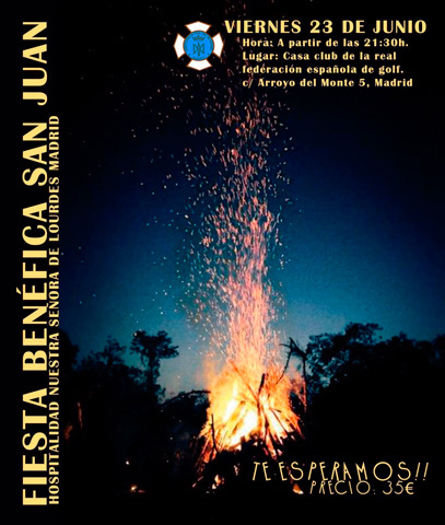Un año más, la Hospitalidad de Nuestra Señora de Lourdes de Madrid organiza una fiesta benéfica coincidiendo con san Juan. Los fondos que se obtengan de la fiesta, que se celebrará el próximo 23 de junio, a partir de las 21:30 horas, en la Casa Club de la Real Federación Española de Golf (Arroyo del Monte, 5), irán destinados a financiar parte del viaje de los enfermos y personas con discapacidad que participan en las peregrinaciones diocesanas al santuario mariano.