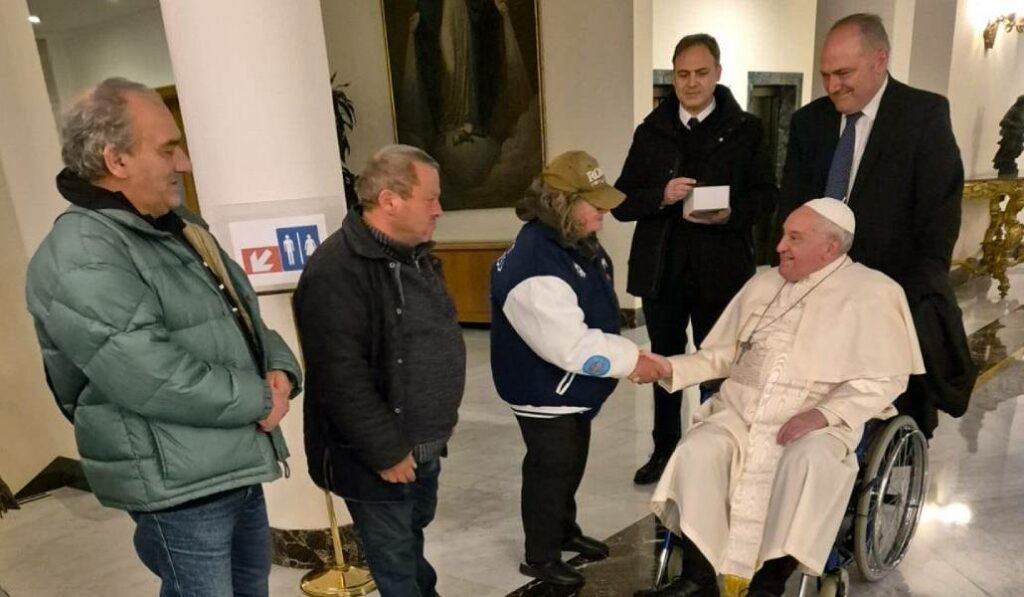 Asimismo, antes de subir al avión, Francisco ha querido saludar en la Casa Santa Marta a un grupo de alrededor de diez personas sin hogar que, acompañadas por el cardenal limosnero apostólico Konrad Krajewski, «encuentran refugio por la noche bajo la columnata de la plaza de San Pedro».