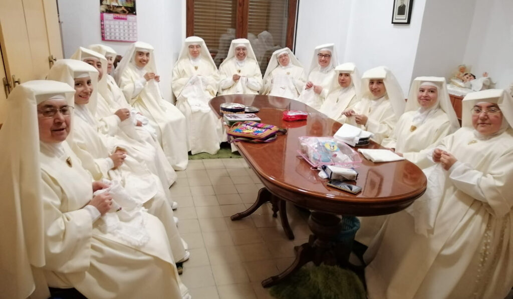 Vestiduras litúrgicas, manteles de altar, ajuares para imágenes… todas las labores de confección destinadas al culto divino ocupan las horas de trabajo de las blancas, como se conoce en Cuenca a las Esclavas del Santísimo Sacramento y de la Inmaculada por el hábito inmaculado que visten. «Antes también cosíamos los trajes de los nazarenos para las procesiones de Semana Santa», aunque estos encargos han descendido en los últimos años, asegura la superiora, la madre M.ª Elena Sánchez. «Tenemos peticiones de toda España», pero con el coronavirus las ventas han bajado notablemente. «Ahora empezamos a remontar, pero durante el confinamiento no vino nadie y han sido los vecinos y los bancos de alimentos los que nos han ayudado a salir adelante». Por constitución de la congregación, «no podemos dedicar nuestro tiempo de trabajo a otra cosa», así que en tiempos de vacas flacas viven de las pensiones (de las religiosas que la tienen) y reciben donaciones de los fieles.