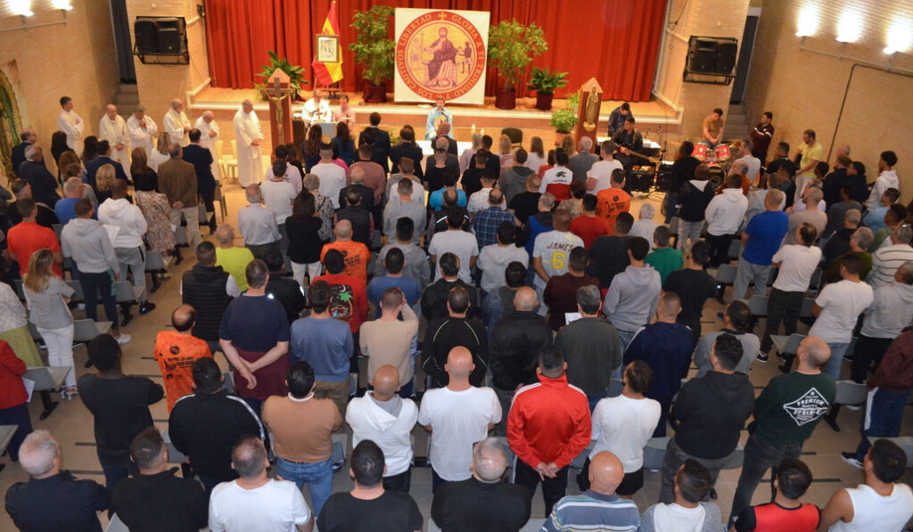 A Antonio lo veremos después en la Eucaristía que se celebrará en el socio, que es como llaman los internos al espacio sociocultural que hay en Soto. Un salón de actos con capacidad para cerca de 200 personas, que se ha llenado y rebosado para la celebración. Allí están acompañados del padre Paulino Alonso, trinitario y capellán de la prisión, que acaba de recibir la medalla de oro de Instituciones Penitencias por sus 30 años de labor con presos. «Son personas», recuerda al comienzo de la celebración, como ha hecho, hace y hará siempre que hable de sus internos.