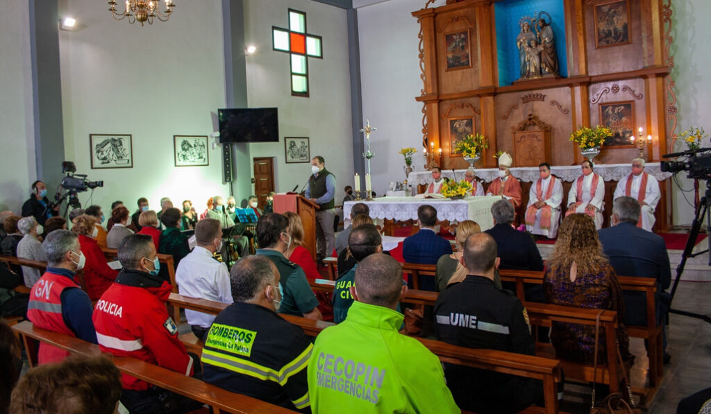 El día anterior, el domingo, se vivió una jornada muy especial. El Día del Señor, la Misa de La 2, se retransmitió para toda España desde allí. «Extraordinaria», la califica el párroco. El obispo de Tenerife, Bernardo Álvarez, que la presidió, no pudo contener la emoción. Es natural de La Palma y sirvió como sacerdote en las zonas más afectadas. Con la Eucaristía volvió el coro –formado por personas mayores– a la parroquia, ausente desde que se desató la pandemia. Las ofrendas fueron significativas: trozos de lava, una maqueta de la iglesia de San Pío X –la que sepultó la lava en Todoque– enviada desde Vigo o los 31 rosarios que la parroquia San Vicente Ferrer de Valencia habían rezado a raíz de la erupción. «Alrededor del volcán se han contado muchas historias: la de los que lo han perdido todo, que son los primeros, la de los que están trabajando… Hay otra historia, la de la acción de la Iglesia, personificada en los sacerdotes de la zona, cuya tarea es estar y acompañar», explica Javier Valiente, salesiano y subdirector de El Día del Señor, que estuvo el fin de semana en La Palma.