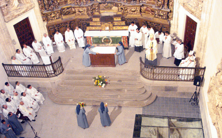 Fue en la plaza Mayor, una de las noches en que las hermanitas del Cordero acudieron al encuentro de los pobres. «¿Qué nos traéis?», dijo uno. La respuesta de su compañero fue tumbativa: «¿Pero no te das cuenta de que nos traen a Dios?». Nos lo cuenta la hermana Dominika, polaca, que habla también con la mirada ahora que la mascarilla tapa el resto. Junto a ella, las hermanas Joana, española, y Marie-Aimée, francesa y responsable de la fraternidad de Madrid, van desgranando su vida en una suerte de balance de sus diez años como encargadas de la liturgia en la capilla del Obispo.
