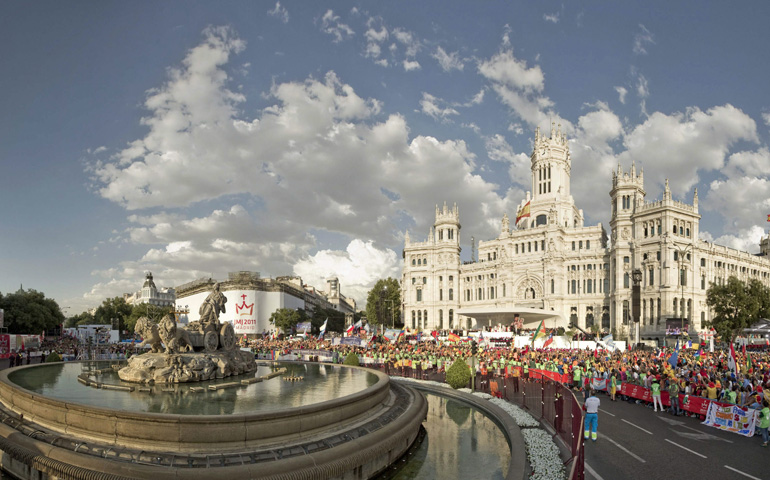 Santo Padre, por segunda vez esta Jornada vuelve a España, en donde tantos jóvenes, familias e instituciones reciben con los brazos abiertos a cuantos nos visitan desde los más variados rincones de la tierra. Muchos han llegado tras un largo viaje para dar testimonio de su ambición por lograr un mundo mejor en un clima de amistad. En España, encontrarán un país abierto al mundo por historia, lengua y cultura; una gran nación democrática, antigua y diversa, amante de la paz, la libertad y la justicia. Como ya quise destacar con ocasión de Vuestra despedida en Barcelona, «la aportación artística, cultural y religiosa del cristianismo resulta clave para entender la personalidad histórica de España».