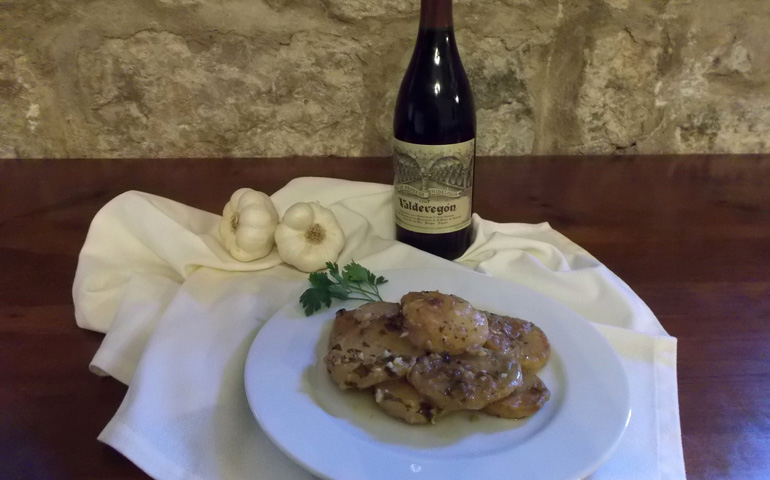 Es una receta sobria, pero sabrosa. Importante, como su propio nombre indica. Más aún si se riega con vino de Valdevegón, marca propia de la casa, elaborado en la bodega más antigua de España en uso (data del siglo XI) y la única gestionada por monjes. No es por dar envidia, pero una servidora ha degustado una añada del 95 y… con patatas o sin ellas, el paladar queda satisfecho. «Tenemos un monje que cocina fenomenal», asegura fray Roberto, burgalés de 47 años y abad de este monasterio, escondido en un pequeño valle a unos diez kilómetros de la capital burgalesa. Como compartir es vivir, en su web, monasteriosanpedrodecardena.com tienen una tienda online donde comprar las delicatessen que hacen los religiosos, seguidores de la regla de san Benito, ora et labora.
