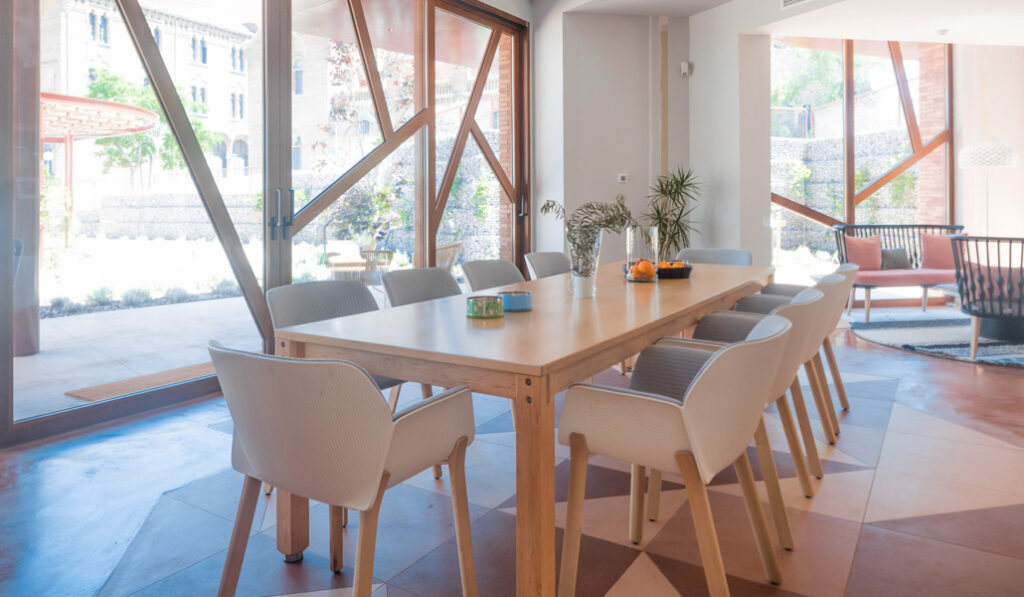 Que este proyecto, nacido en Escocia en 1995, sea una realidad en España es gracias a la relación de algunas personas con la propia enfermedad. Como la escocesa Rosy Williams, que vivía en Barcelona y que conoció los centros Maggie’s –el espejo donde se mira Kālida y red a la que pertenece– después de ser diagnosticada de cáncer y volver a su país para recibir tratamiento. Ella fue quien, a su vuelta a España, planteó que esa atención integral que ella había recibido tenía que existir aquí. También fue gracias a la apuesta de la Fundación Hospital de la Santa Creu i Sant Pau –en la que participa el Cabildo de la catedral de Barcelona– que gestiona el hospital del mismo nombre, a los oncólogos y a la aportación desinteresada, entre otros, de Benedetta Tagliabue, arquitecta que proyectó el edificio. Su marido, el también arquitecto Enric Miralles, falleció a causa del cáncer.