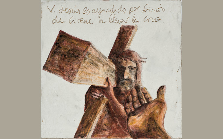 V estación: El cireneo ayuda a Jesús a llevar la cruz